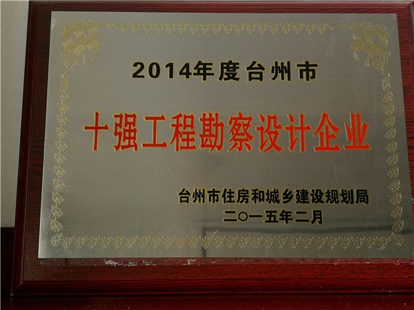2014年度臺州市十強工程勘察設計企業