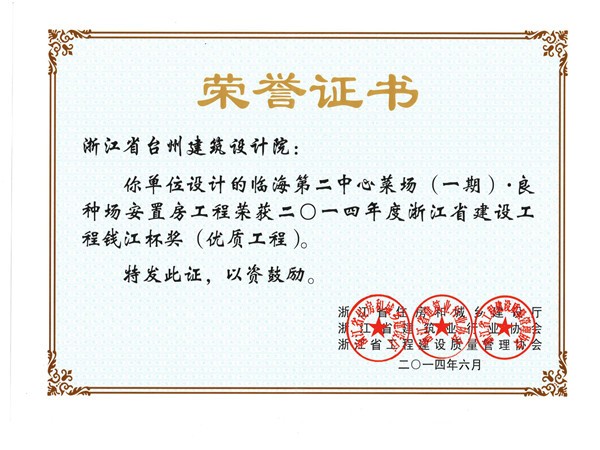 第二中心菜場(一).良種場安置房工程獲2014浙江省建設工程錢江杯獎(優質工程)